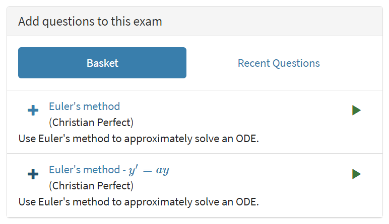 The Basket tab shows questions you’ve added to your basket: you can browse the question editor to find questions, add them to your basket, and then go back to the exam editing page and add them in.