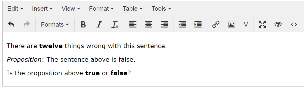Use this field to describe the question’s contents, what it assesses, and so on. This is shown in the questions index and in the questions list of any exams containing this question, so make sure it’s fairly concise.